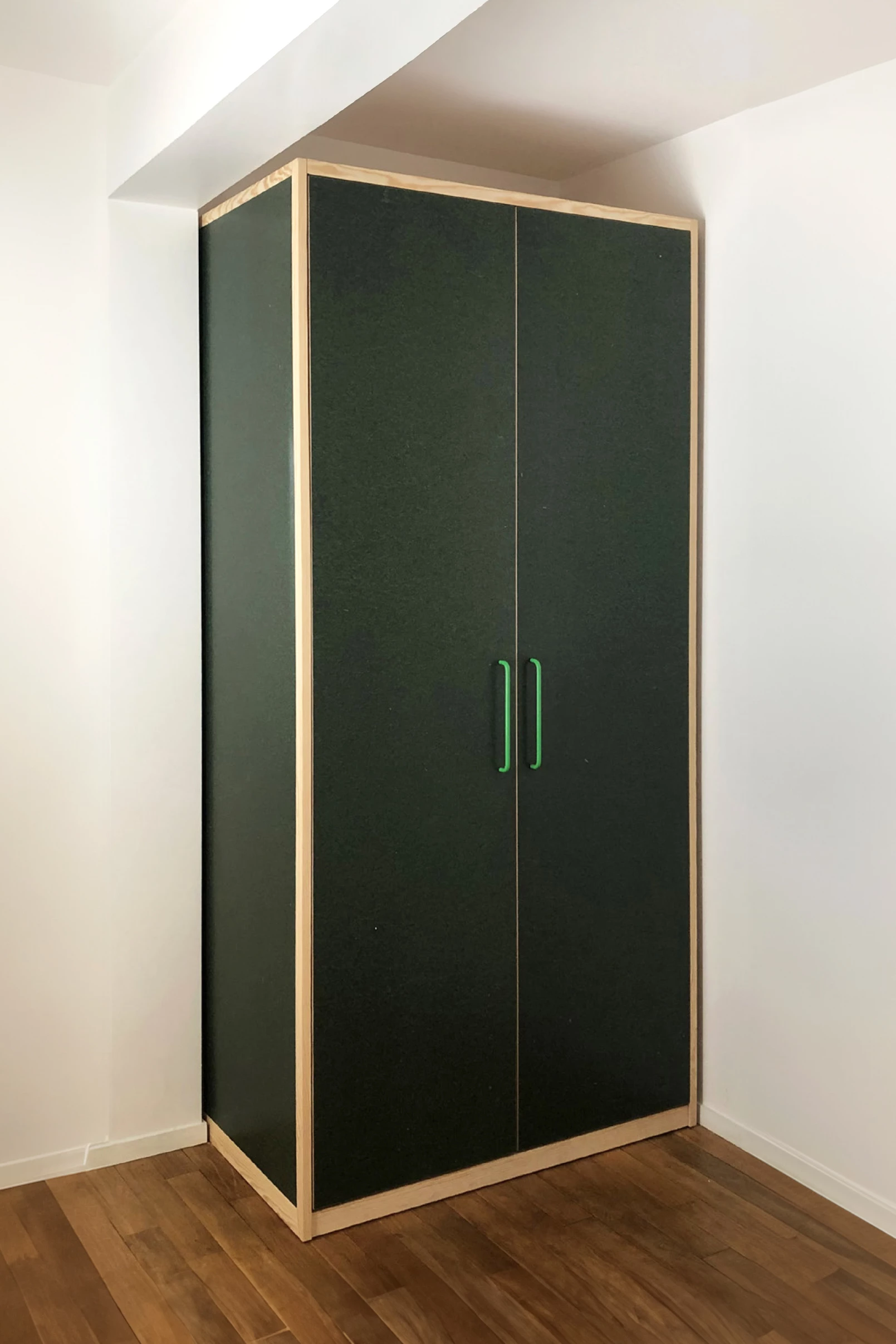 Meubles démontables répondant aux besoin de solution de rangement. Les côtés et façades sont en aggloméré, matériau bon marché et stable. Les arrêtes sont en bois massif pour une meilleure résistance.