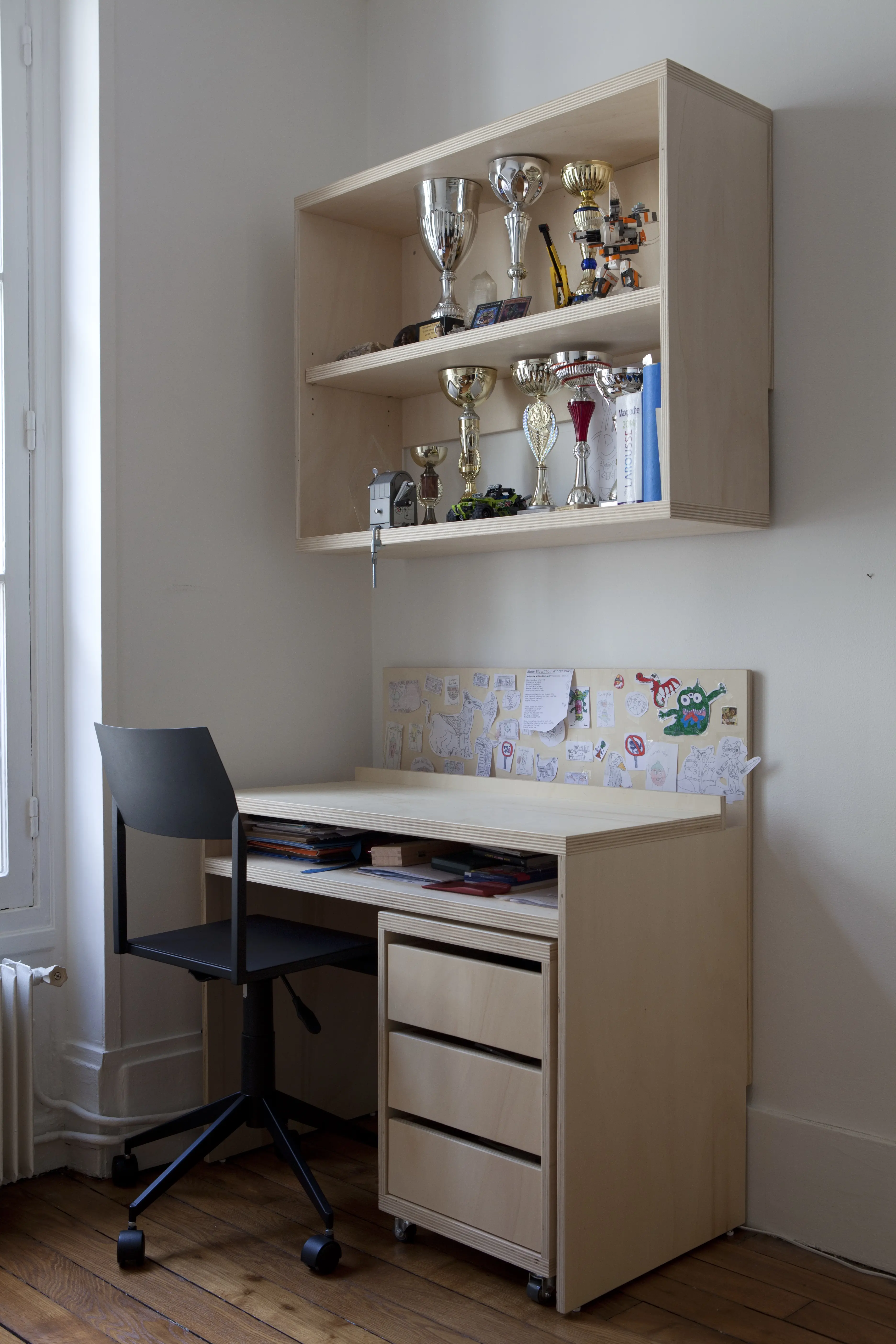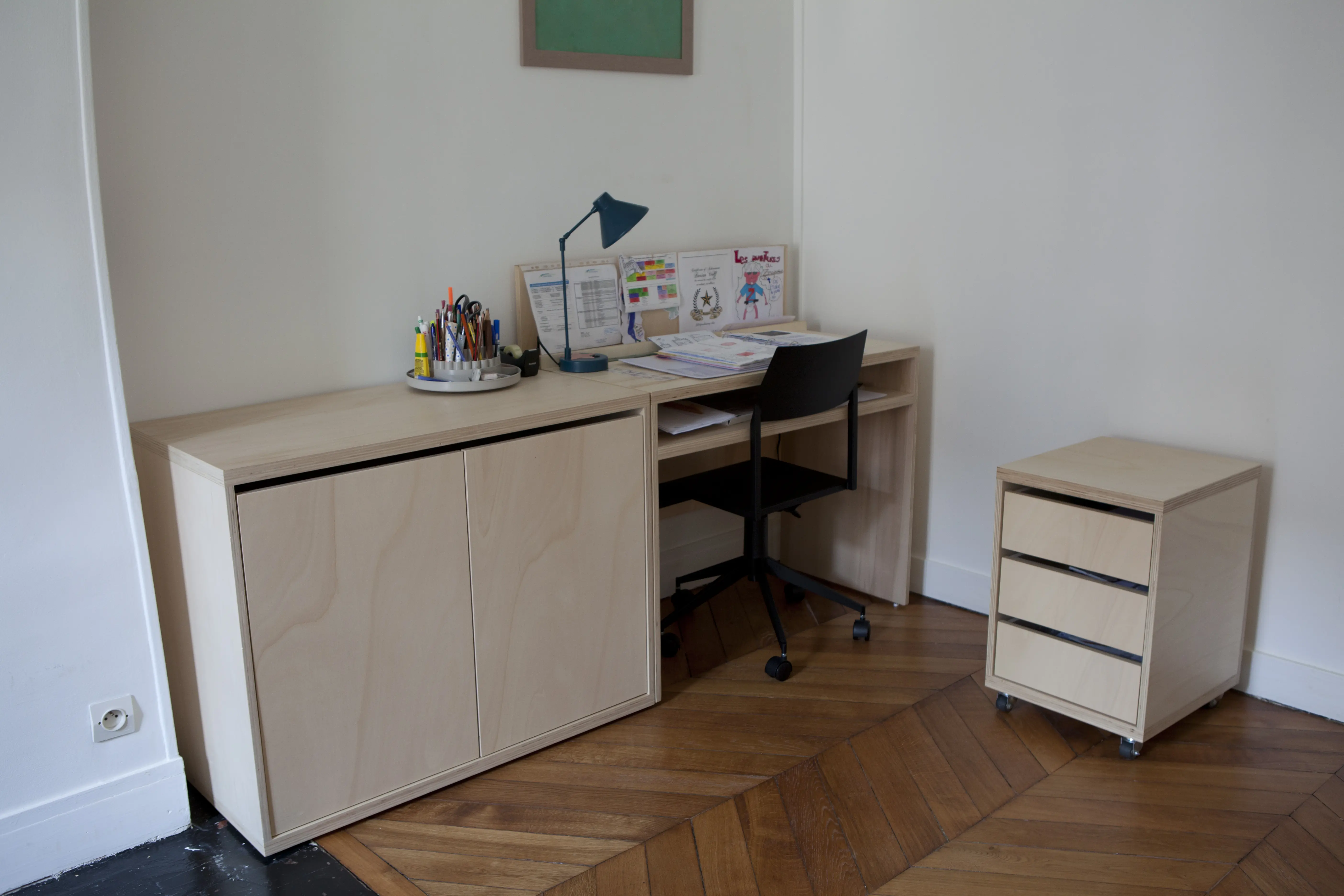 dessiner et réaliser deux bureaux et deux commodes pour des chambres d'enfant