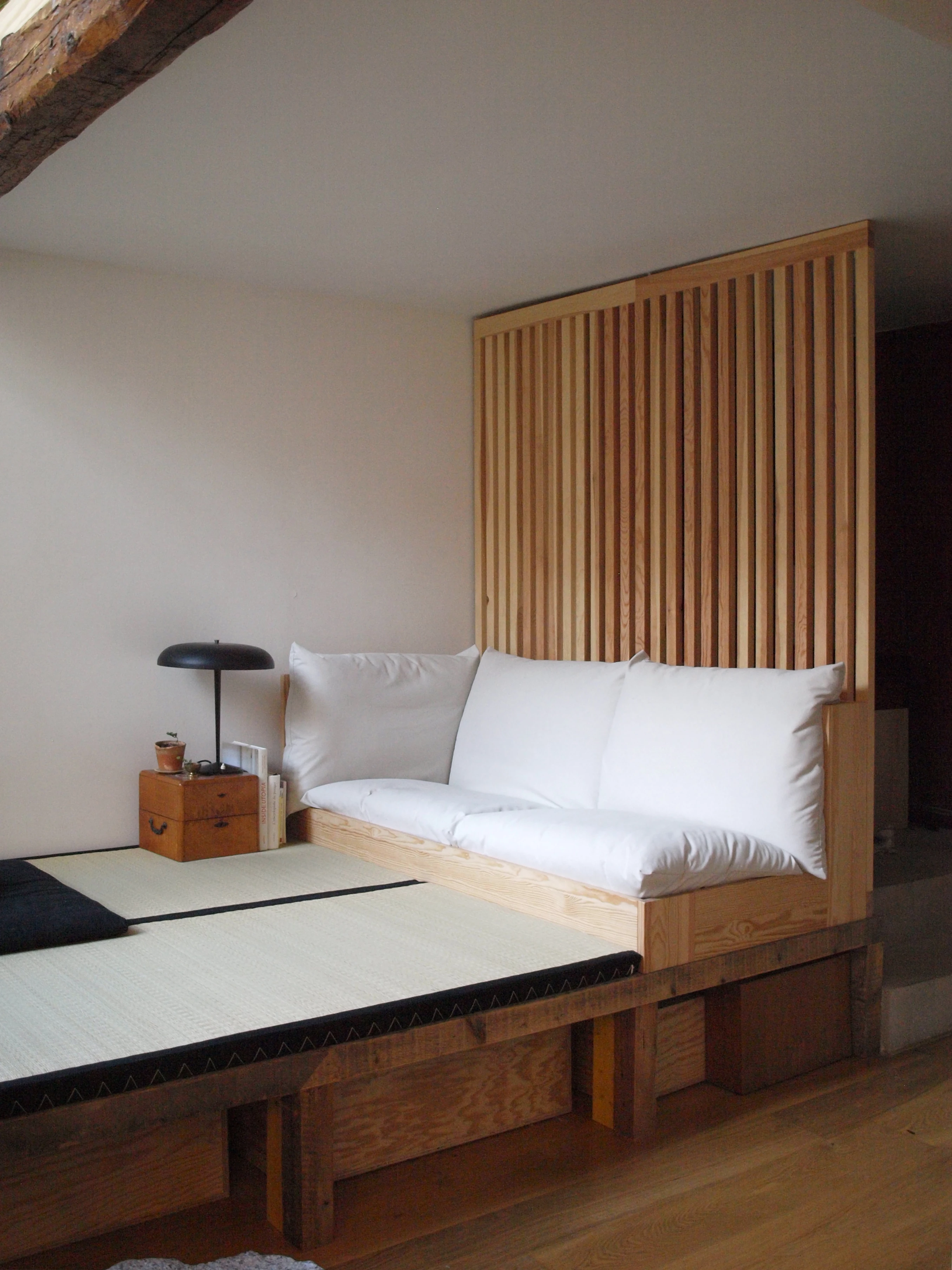 Canapé deux places conçu pour une estrade. Il fait la taille d'un tatami.